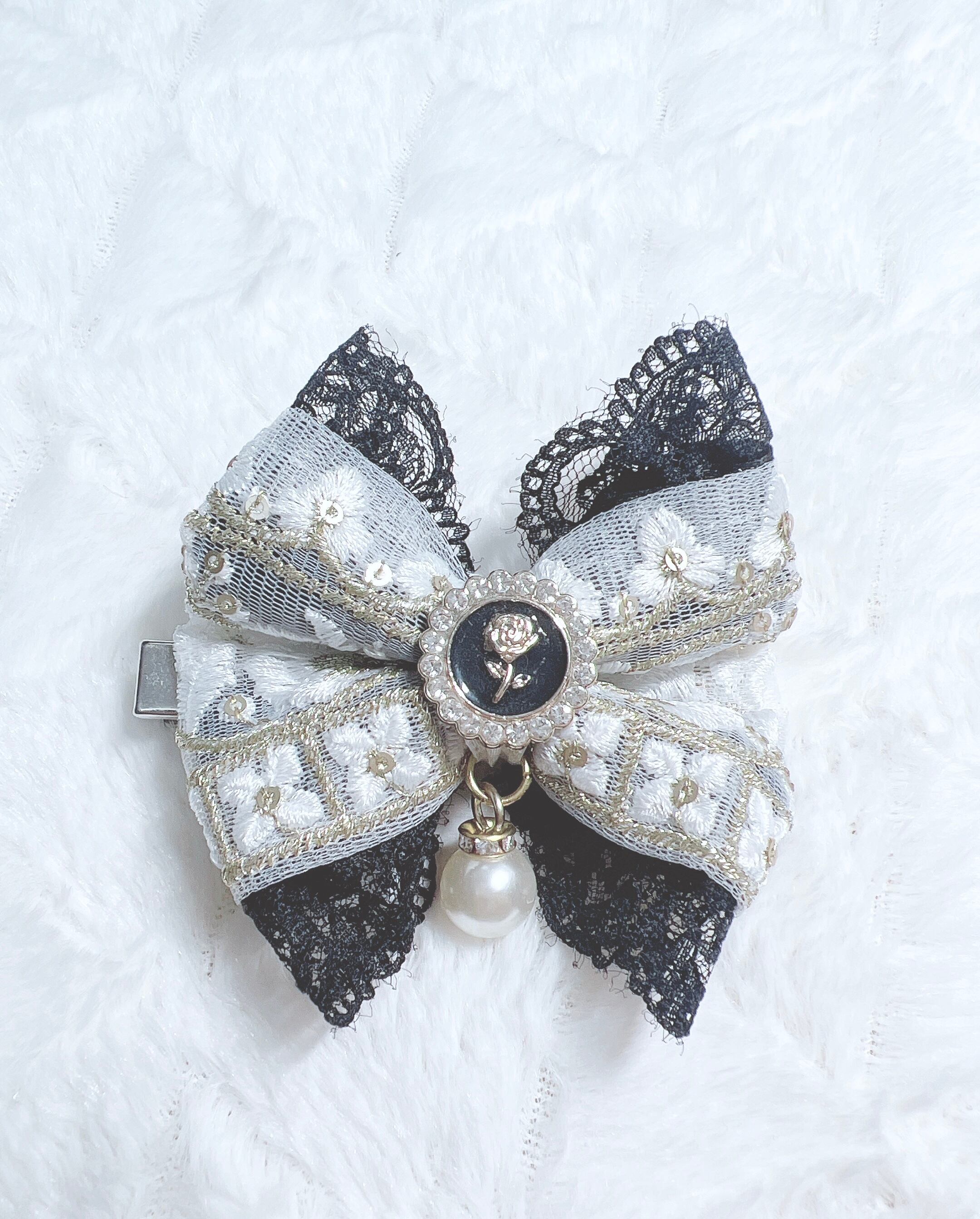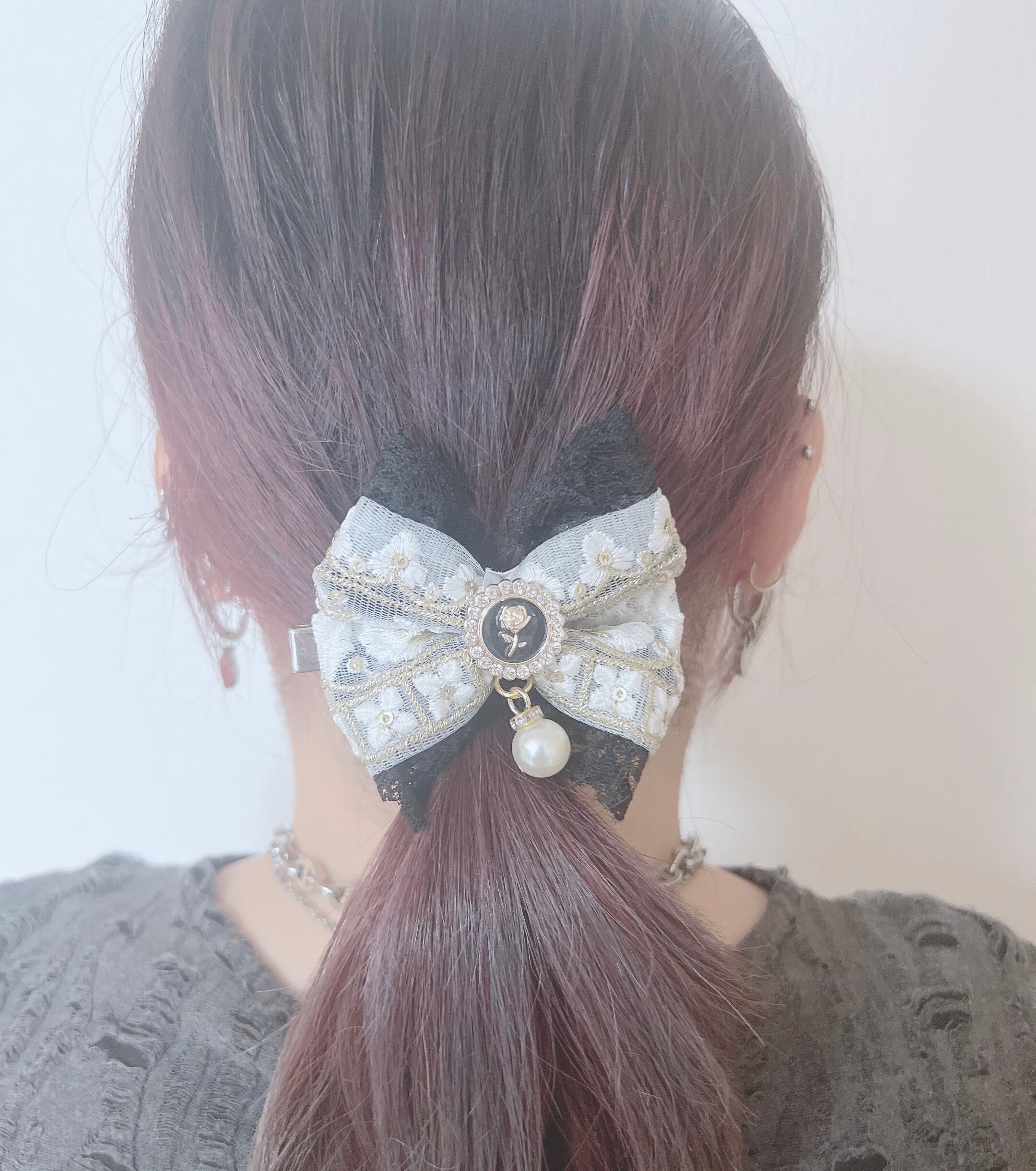 ゴールドの模様の入ったリボンに黒のレースをつけてお上品に仕上げてみました!